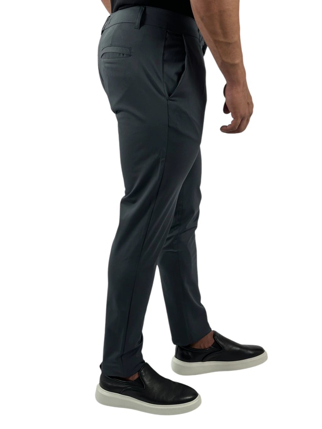 Seu corte ajustado valoriza a silhueta, garantindo um caimento perfeito e liberdade de movimento ao longo do dia. A cor graphite confere um visual contemporâneo e versátil, facilitando a combinação com diversas camisas, blazers e acessórios.