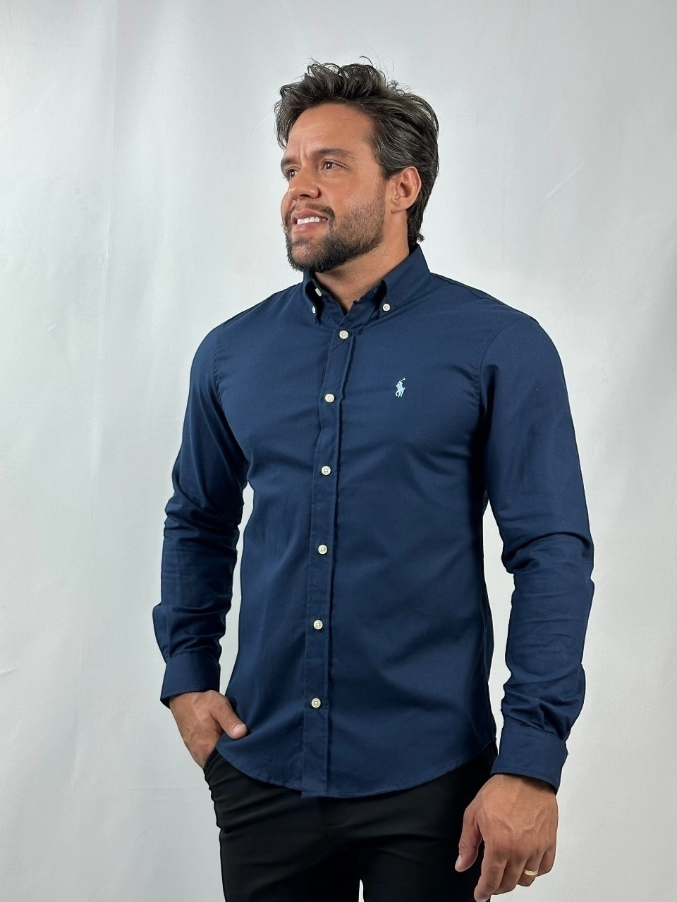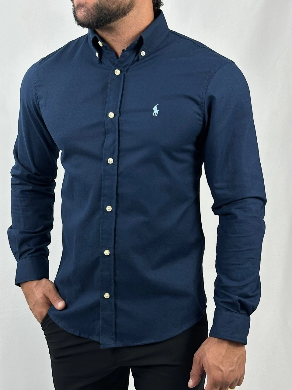 CAMISA M/L OXFORD AZUL MARINHO PONEY AZUL CLARO RALPH LAUREN