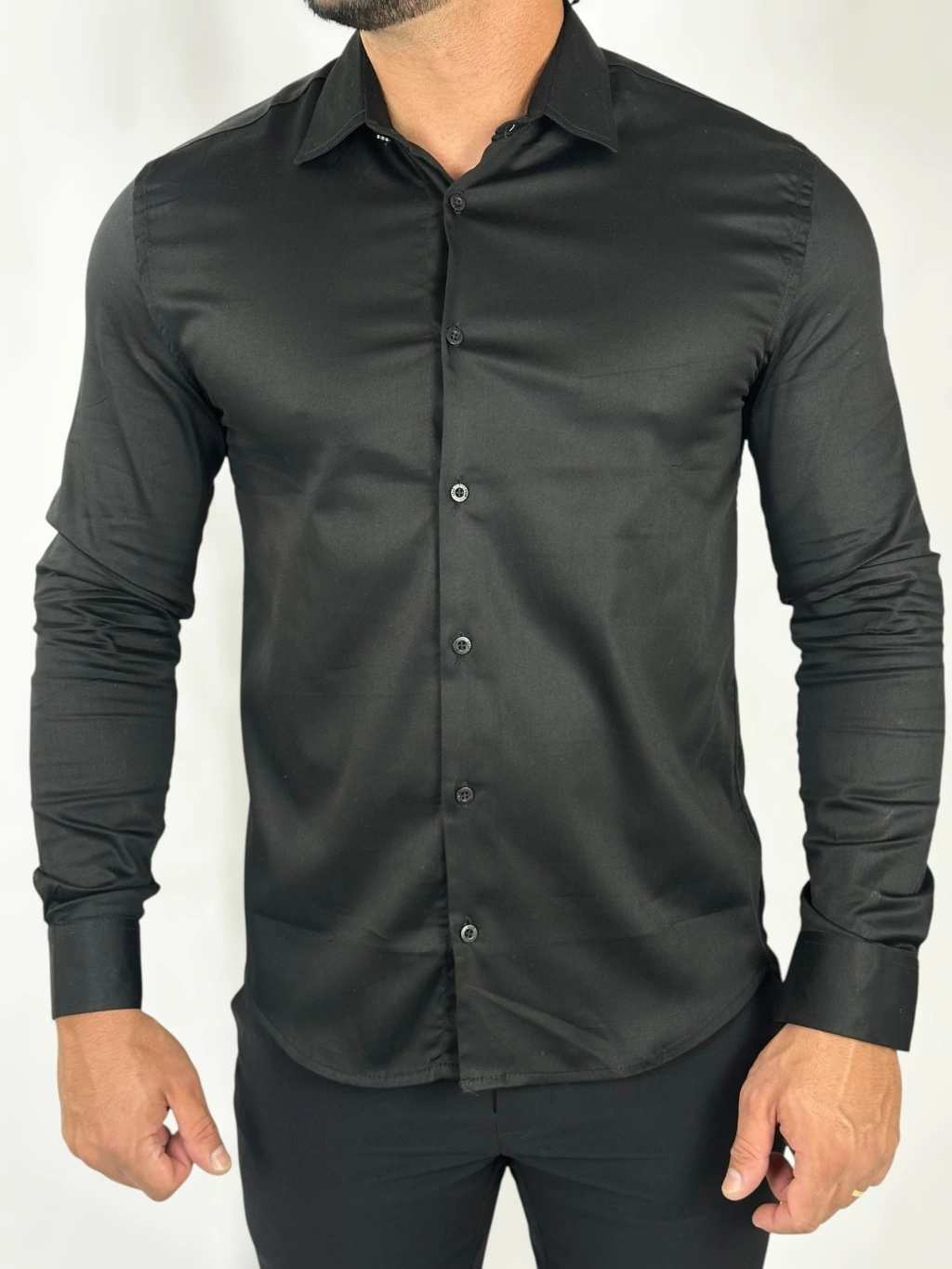 Descubra a elegância e o conforto da Camisa Manga Longa Premium Algodão 60 Fios Preto Urbo