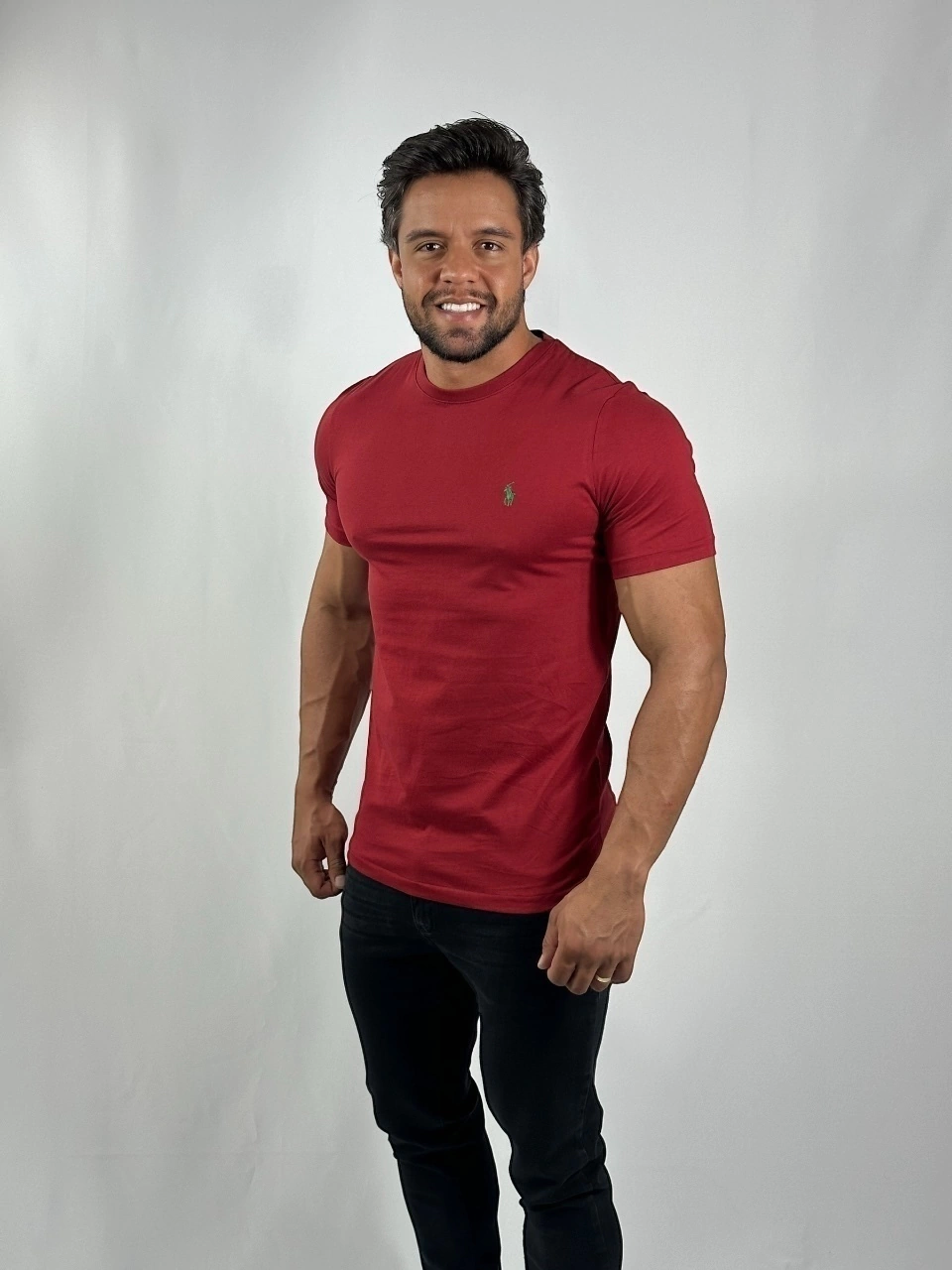 A Camiseta Ralph Lauren é uma peça de vestuário que apresenta um elemento de design icônico. Com a logo da marca, que apresenta um pônei bordado. A marca é conhecida por seu estilo clássico e elegante.