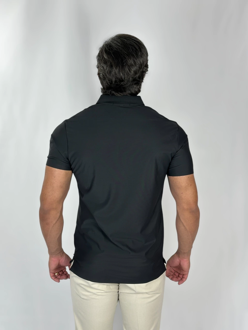 Confeccionada com tecido tecnológico de alta performance, essa gola polo oferece resistência ao desbotamento, garantindo que a cor preta permaneça intensa mesmo após várias lavagens. Além disso, suas costuras invisíveis proporcionam um acabamento refinado e maior durabilidade.