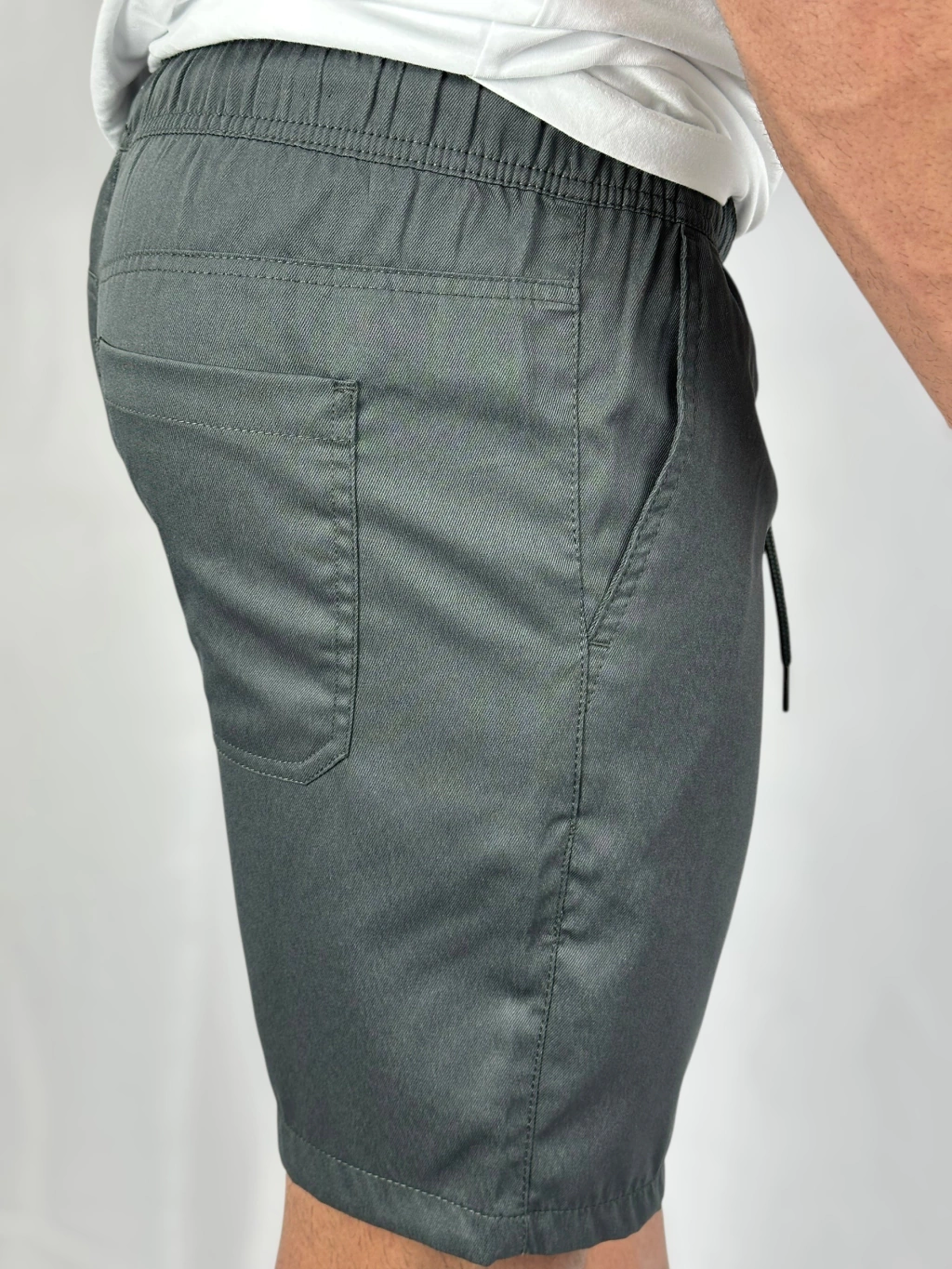 Este short masculino é confeccionado com tecido de alta qualidade que garante durabilidade, resistência e um toque macio na pele. Sua cor grafite versátil combina facilmente com diversas peças do seu guarda-roupa, tornando-o ideal para looks casuais e urbanos.